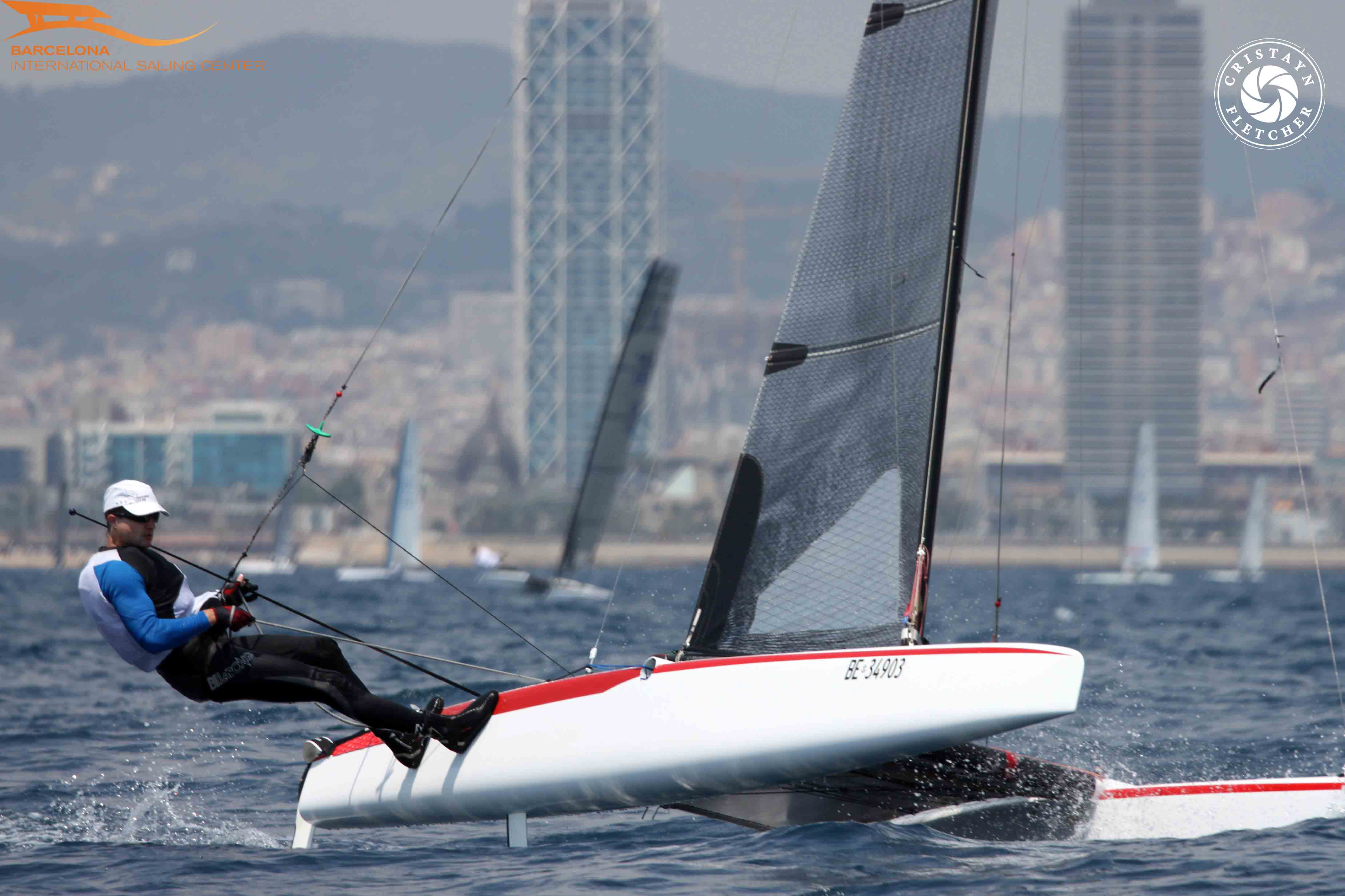 Plattform (Scheurer G6, Baujahr Ende 2012) mit gebogenen Schwertern (Auftriebswinkel während dem Segeln einstellbar), Ruderblätter mit Winglets