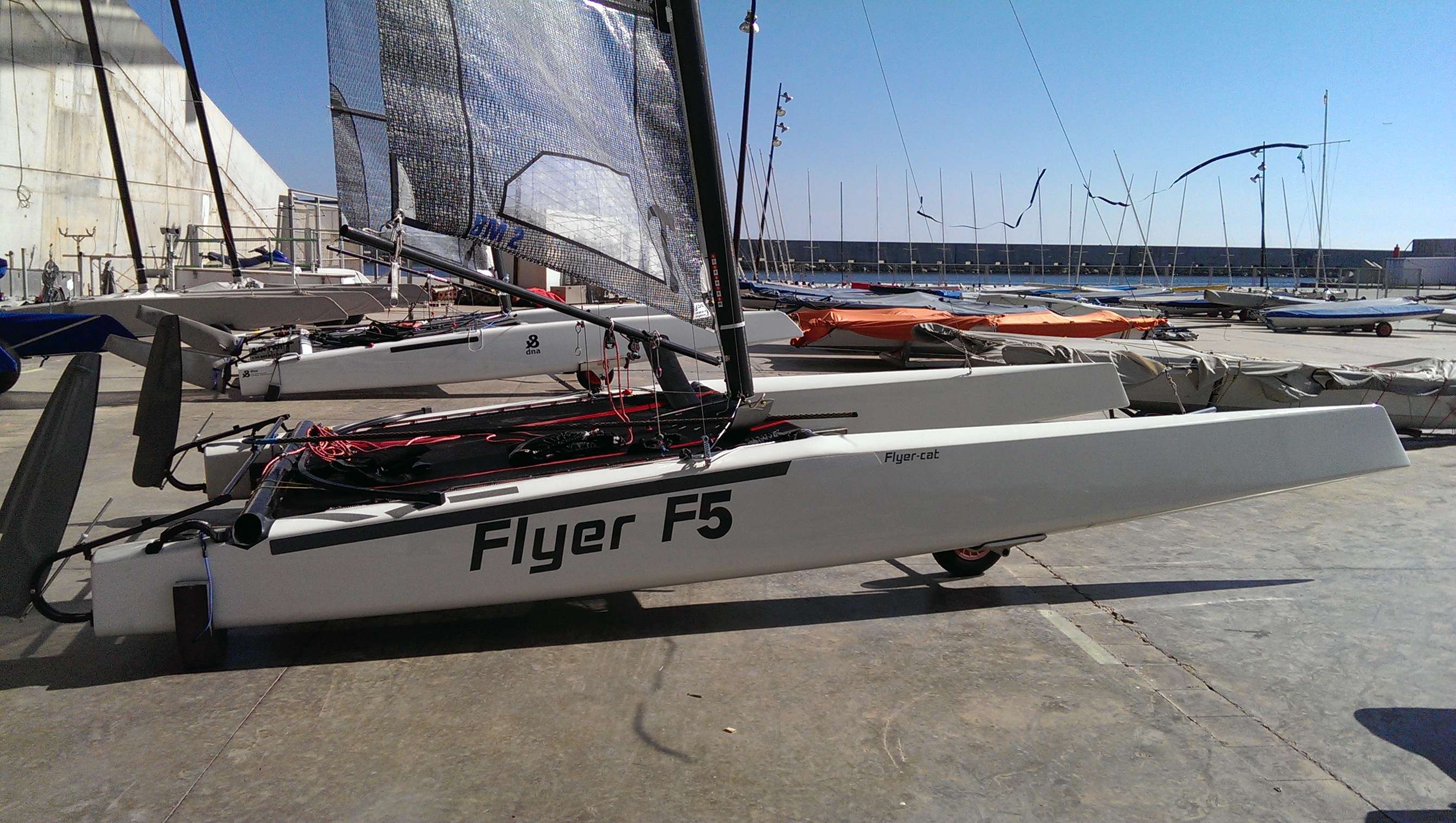 Platform, centerboards, rudders, rudder cover, carbon rudder bar, stick, platform back protector, rigged for racing. Never knocked. All for 10.000€