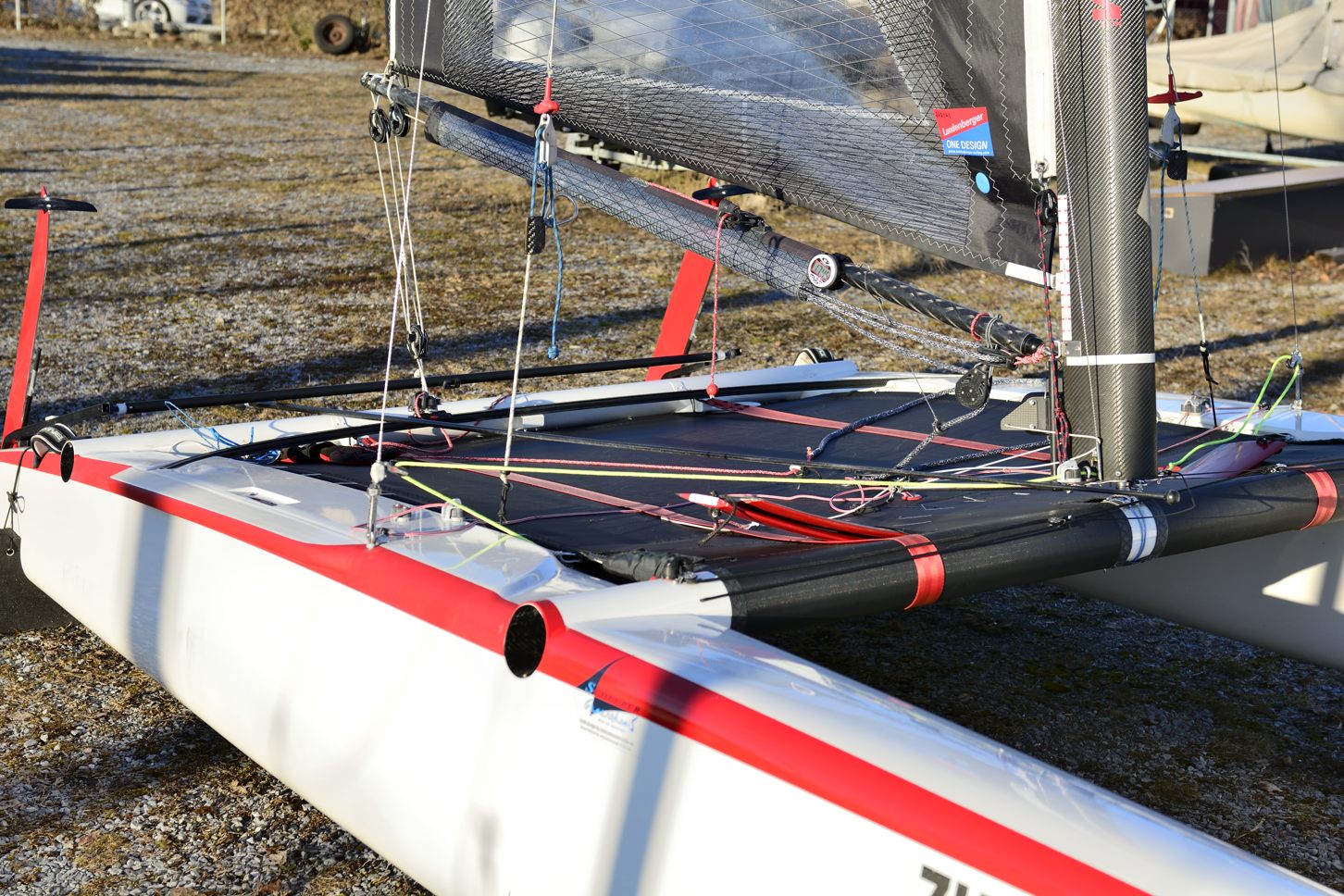 Jahrgang 2012, Ruder mit Foils, Schwerter C-Form, Mast Fiberfoam weich, Segel Landenberger, Sommer 2014 aktuelles Modell, zentrale Grossschot-Führung, Harken-Blocks, Wasserung-Rolli, Blache, alles gepflegt und in gutem Zustand,