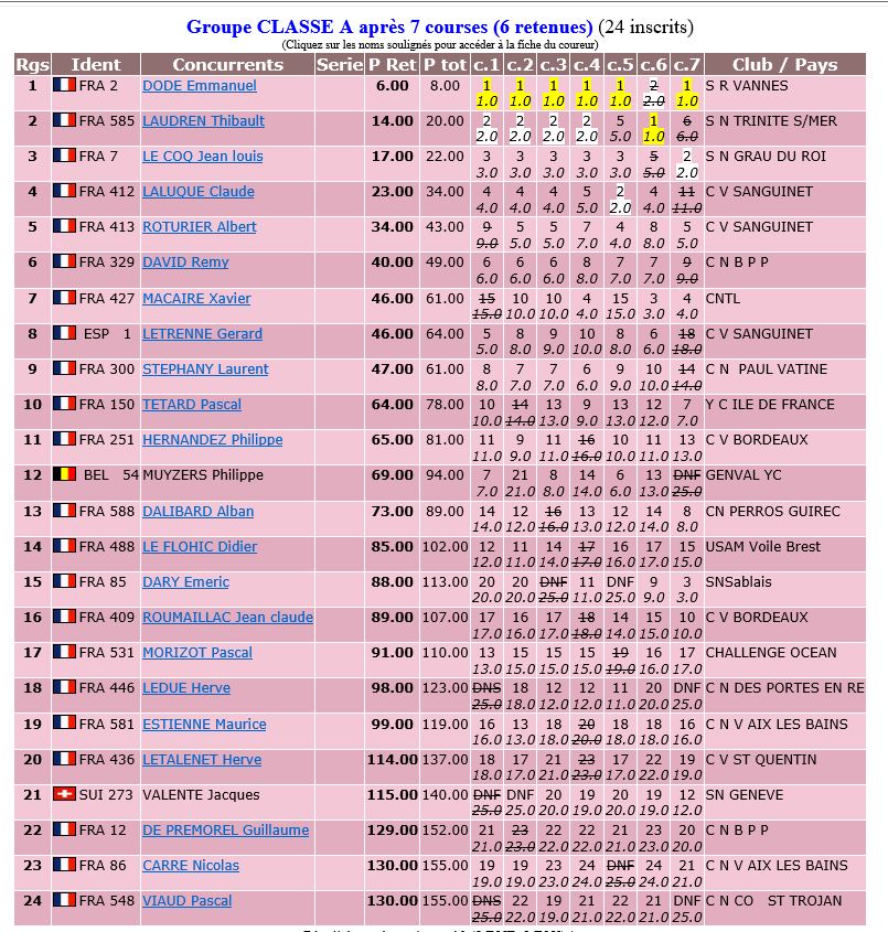 Bonjour :), n'ayant pas pu me rendre à la Pelle pour des raisons professionnelles, j'ai décidé de me rendre à Bordeaux pour participer à ma première régate avec mon classe A (exploder A13). 3 jours incroyables - 2 ronds de régates - 253 bateaux sur l'eau et 24 classe A - dont 4 volants. des courses entre 12 et 17 noeuds de vent. Charles m'avait prévenu.. l'apprentissage de ce nouveau support prend du temps, et j'ai fair mes premières expériences.. juste avant le départ de la première course... je casse mon stick dans un virement raté.. ne jamais s'appuyer sur celui-là.. le temps de rentrer à terre, deux courses ont été courues donc 2 DNS... ensuite 2 courses 20ème, 2 courses 19ème et la dernière du week-end une 12ème place..trop sympa.. bref bateau extraordinaire, énormément de travail pour comprendre les boutons et les subtilités. J'espère que nos amis Français trouveront une solution pour leur "cissions" car certaines discussions sont vraiment tendues. domination d'Emmanuel Dodé avec son F1 - 6 manches de 1er et une 2ème place.