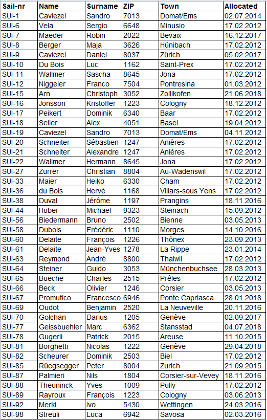 Please note that Boat Sail Numbers in the range 231-900 are still available for free, for each boat introduced or made in Switzerland, and provided by the class president as well.