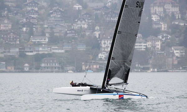 Le week-end des 27 et 28 avril à Spiez ne s'annonçait pas sous les meilleures auspices. Une Météo annoncée comme très pluvieuse pour le samedi, et douteuse pour le dimanche. Malgré celà, 14 navigateurs A-Cat se sont déplacés pour cette première régate de la saison.