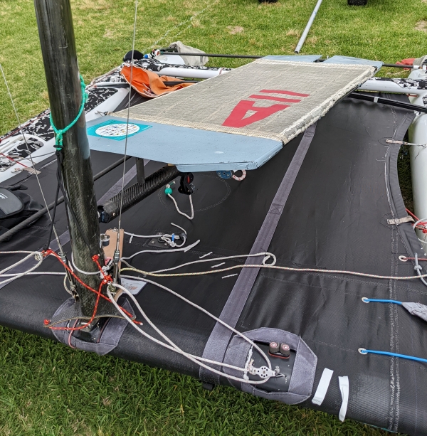 Today 1st price for originality went to this construction. Do not buy a deck-sweeper, just construct a 2nd deck above the trampoline and your old sail is becoming a deck-sweeper.