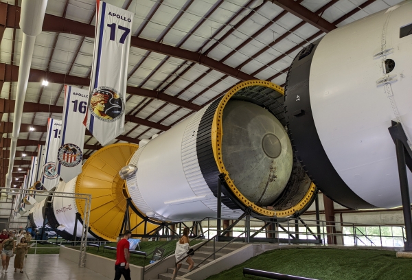 Another huge building with a Saturn V rocket.
